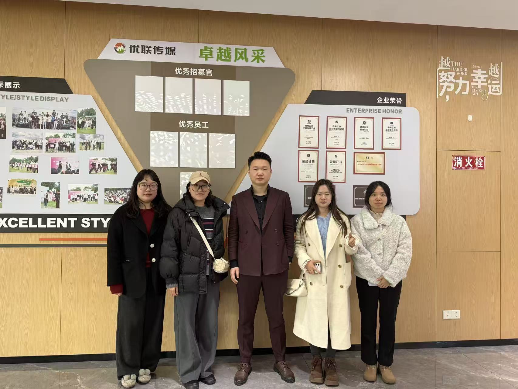 为拓宽毕业生就业渠道,探索校企合作新路径,2025年12月5日中午12:00,威廉williamhill体育前往四川优联盛世文化传媒有限公司进行访企拓岗专项交流活动。优联传媒人事总监千山热情接待了对公司教师团队。威廉williamhill体育员工第一党支部书记史利珍、威廉williamhill体育辅导员陈洪琼、张倩、何彬嫦参与了此次交流活动。